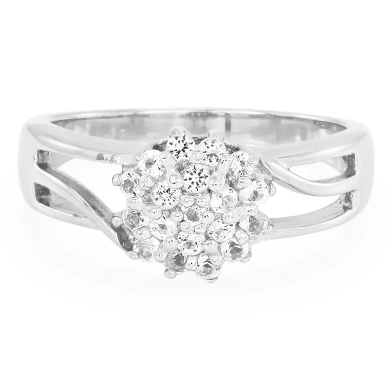 Entdecken Sie den leuchtenden Charme dieses atemberaubenden Rings mit 19 runden weißen Topasen im Brillantschliff aus Brasilien, die zusammen 0,385 Karat wiegen. Der aus hochwertigem 925er Sterlingsilber gefertigte Ring strahlt mit seinem schimmernden Cluster-Design moderne Eleganz aus. Er eignet sich perfekt, um der Alltagskleidung einen Hauch von Glanz zu verleihen oder die Abendgarderobe aufzuwerten und ist eine vielseitige Ergänzung für jede Schmucksammlung. Sein raffiniertes Aussehen macht ihn zu einer ausgezeichneten Wahl für Jahrestage oder als durchdachtes Geschenk.