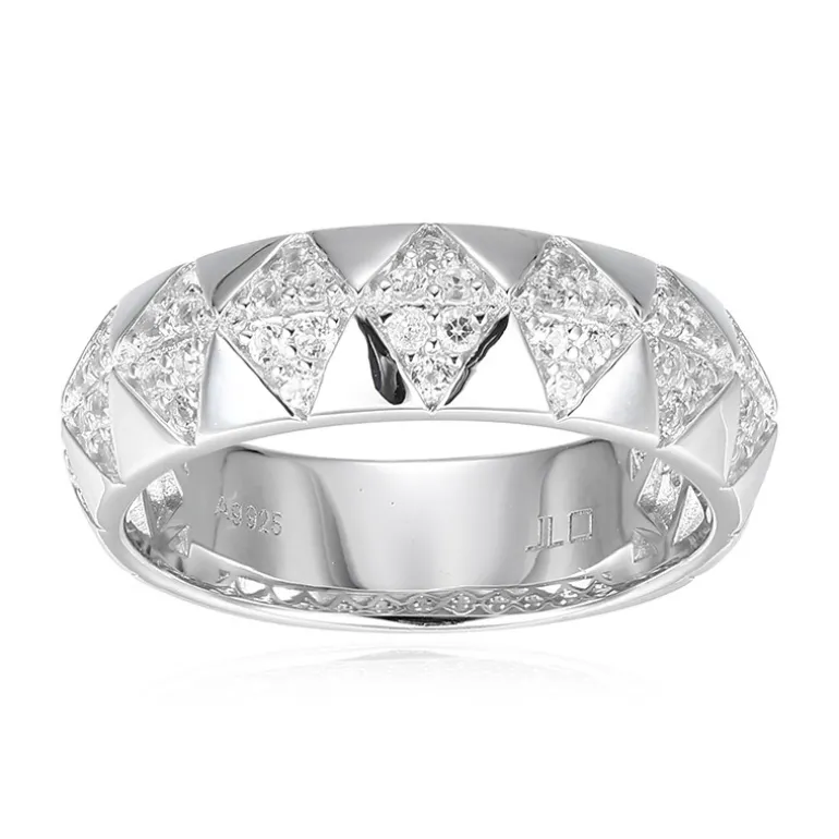 Entdecken Sie die geometrische Anziehungskraft dieses Silberrings mit brasilianischem Weißtopas – ein Schatz von subtiler Eleganz. Mit 66 präzisionsgeschliffenen Edelsteinen von insgesamt 0,477 Karat, gefasst in hochwertigem 925er Sterlingsilber, strahlt dieses Schmuckstück Raffinesse aus. Die runden 1,3 mm großen weißen Topase funkeln aus jedem Blickwinkel und werden durch das 4,28 g schwere Silberband ergänzt. Dieser Ring ist ideal, um sowohl der Tages- als auch der Abendgarderobe einen Hauch von Klasse zu verleihen, und verspricht, eine vielseitige Ergänzung für jede Schmucksammlung zu sein.