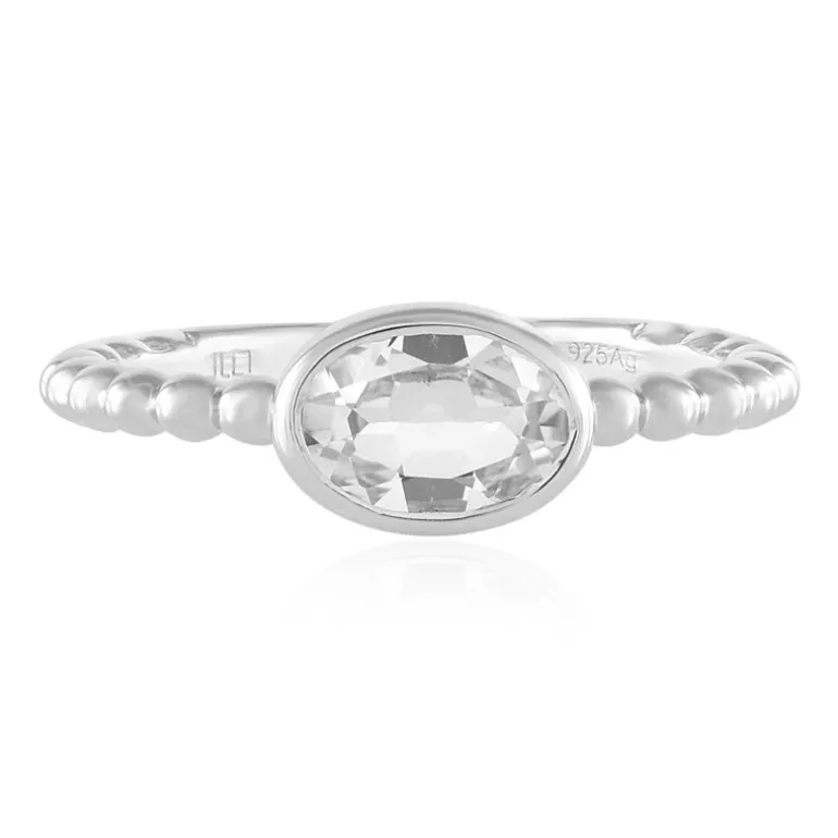 Entdecken Sie die Anziehungskraft dieses raffinierten Rings aus weißem Topas mit einem 0,749 Karat schweren Edelstein im Ovalschliff aus Madagaskar. Der Ring ist aus glänzendem 925er Sterlingsilber mit Platin-Finish gefertigt und bietet eine wunderbare Balance zwischen Eleganz und Schlichtheit. Er eignet sich sowohl für den Alltag als auch für besondere Anlässe und passt sowohl zu legerer als auch zu formeller Kleidung, was ihn zu einer vielseitigen Ergänzung für jede Schmucksammlung macht.