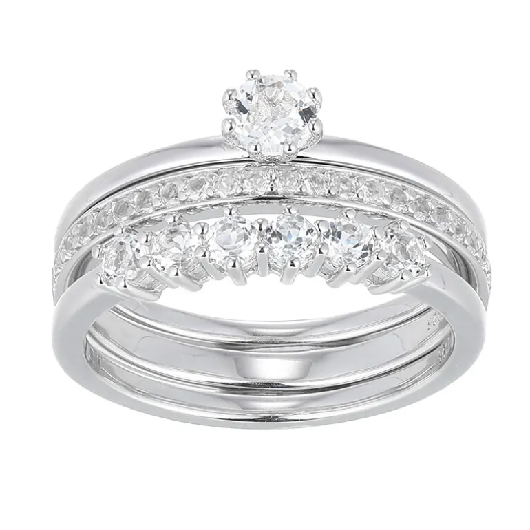 Brasilianischer Weißer Topas 925 Silber Trio Ringe, 0,697ct