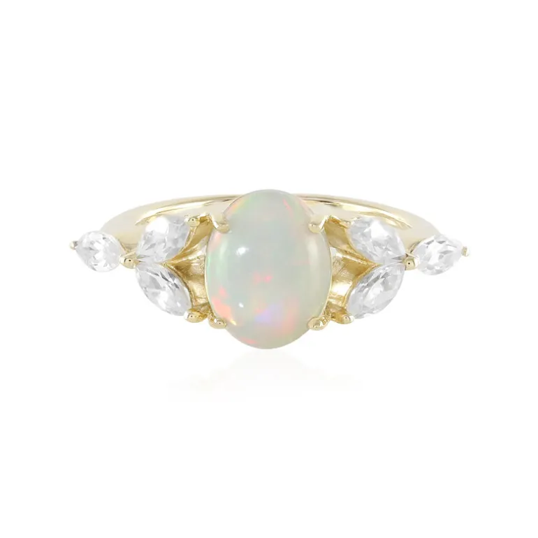 Äthiopischer Welo Opal & Zirkon Gold Ring 9K