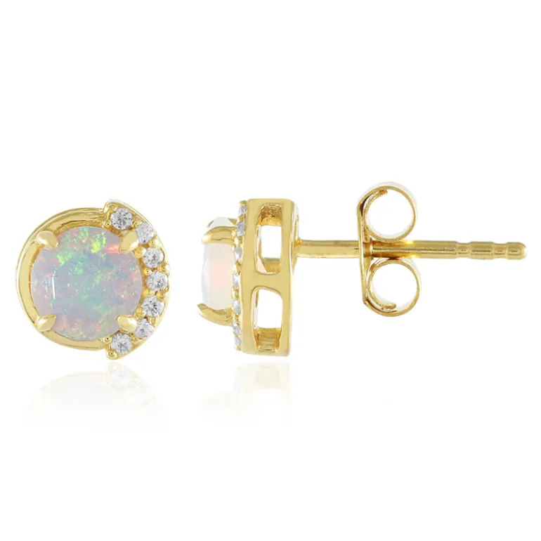 Diese bezaubernden Ohrringe sind mit faszinierenden Welo-Opalen aus Äthiopien besetzt, die in vergoldetes 925er Sterling Silber gefasst sind. Ihr eleganter runder Schliff wird durch funkelnde Zirkone aus Kambodscha akzentuiert und verleiht jedem Outfit einen Hauch von Anmut. Perfekt für eine schicke Abendveranstaltung oder einen raffinierten Tageslook, sind diese Ohrringe eine vielseitige Ergänzung für jede Schmucksammlung.