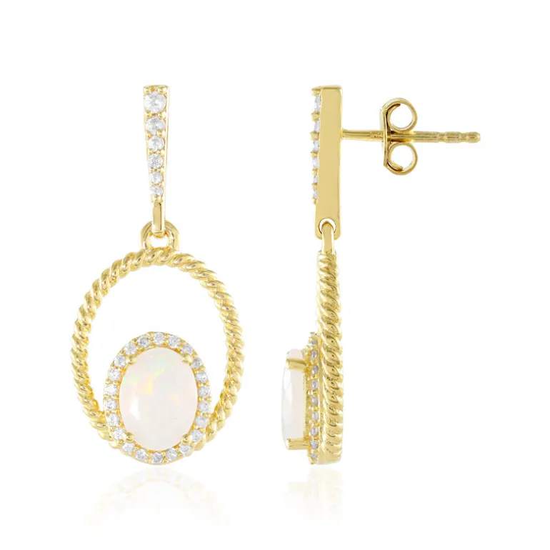Welo Opal Zirkon Vergoldete Silber Ohrringe