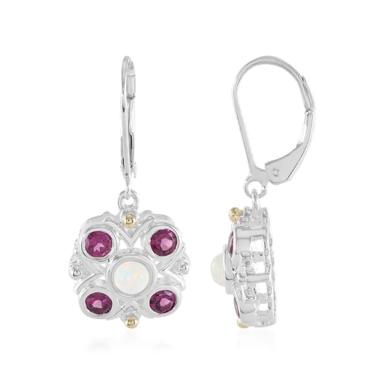 Welo Opal & Rosa Edelstein 925 Silber Ohrringe, 14K Akzente