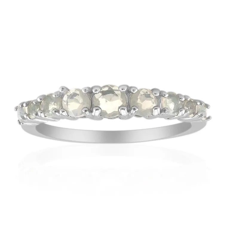 Entdecken Sie die Faszination dieses exquisiten äthiopischen Welo-Opal-Rings aus glänzendem 925er Sterlingsilber. Mit einer Symphonie von Opalen mit einem Gesamtkaratgewicht von 0,435 ct. präsentiert jeder Edelstein sein einzigartiges Farbspiel in einem klassischen Rundschliff, der von 2 mm bis 3,5 mm reicht. Dieses moderne und raffinierte Schmuckstück mit einer Gesamtgröße von 21×20 mm ist eine vielseitige Ergänzung für jede Kollektion und eignet sich sowohl für das tägliche Tragen als auch für besondere Anlässe. Kombinieren Sie ihn mit einfarbigen Outfits, um seine ätherische Schönheit zur Geltung zu bringen, oder mit einem Abendkleid, um ihm einen subtilen Hauch von Eleganz zu verleihen.