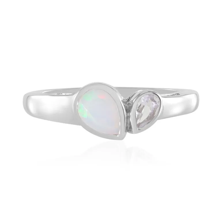 Entdecken Sie das bezaubernde Farbenspiel dieses Rings aus Sterlingsilber, der einen faszinierenden äthiopischen Welo-Opal mit einem funkelnden brasilianischen weißen Quarz vereint. Das tropfenförmige Design der beiden Edelsteine mit einem Gesamtkaratgewicht von 0,582 ct ist in poliertem, platiniertem Silber gefasst und hat ein glänzendes Finish. Dieser Ring ist ideal, um dem Alltag oder besonderen Anlässen einen Hauch von Eleganz zu verleihen. Er ist eine vielseitige und auffällige Ergänzung für jede Schmucksammlung.