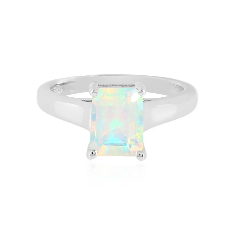 Entdecken Sie das bezaubernde Spiel der Farben mit diesem äthiopischen Welo-Opal-Ring, der aus hochwertigem platiniertem 925er Sterling Silber gefertigt ist. Der 0,79-karätige Opal mit seinem einzigartigen Oktagon-Schliff misst etwa 8×6 mm und zeigt ein lebhaftes Spektrum, das das Licht in jedem Winkel einfängt. Dieser moderne Ring mit einem Gewicht von ca. 1,96 g bietet ein elegantes Design, das sich für das tägliche Tragen oder besondere Anlässe eignet. Er lässt sich sowohl zu legerer als auch zu eleganter Kleidung kombinieren und verleiht Ihrem Outfit einen magischen Touch.