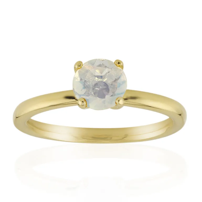 Entdecken Sie den subtilen Charme dieses äthiopischen Welo-Opal-Rings. Der runde Edelstein mit einem Gewicht von 0,486 Karat und einer Größe von ca. 6 mm ist in 925er Sterlingsilber mit einer glänzenden Goldauflage gefasst. Das schlichte, aber raffinierte Design mit dem schmalen Band und der eleganten Fassung eignet sich sowohl für den Alltag als auch für besondere Anlässe. Dieser Ring ergänzt mühelos ein schickes Tagesoutfit oder verleiht einem Abendkleid einen Hauch von Glamour, was ihn zu einer vielseitigen Ergänzung Ihrer Schmucksammlung macht.