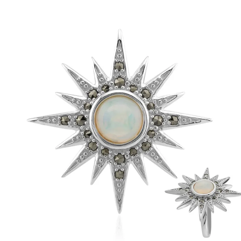 Entdecken Sie den himmlischen Charme dieses Rings aus äthiopischem Welo-Opal, flankiert von glitzerndem Markasit. Der 0,7-karätige Opal im runden Cabochon-Schliff, eingebettet in ein Starburst-Design, ist eine harmonische Mischung aus natürlicher Pracht und einem Kaleidoskop von Farben. Das 5,6 g schwere Stück ist in 925er Sterlingsilber gefasst und hat einen Hauch von Vintage-Inspiration. Perfekt, um Ihrem Alltagsoutfit einen Hauch von Eleganz zu verleihen oder als auffälliges Accessoire für besondere Anlässe.