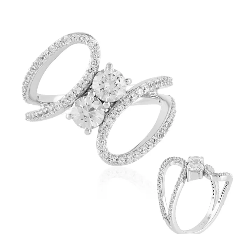 Entdecken Sie die fesselnde Anziehungskraft dieses Rings aus 9-karätigem Gold, der mit zwei kambodschanischen Zirkon-Edelsteinen besetzt ist. Das 1,521 ct schwere Duo aus runden Brillanten mit einem Durchmesser von jeweils ca. 5 mm strahlt Klarheit und Glanz aus, während das Gefolge aus 74 kleineren Zirkonen mit einem Gesamtgewicht von 0,63 ct einen schillernden Rahmen bildet. Dieses Schmuckstück mit einem Gewicht von ca. 4,72 g aus 375er Gold strahlt Eleganz aus – perfekt für Abendveranstaltungen oder um Ihrem Alltagslook einen Hauch von Glamour zu verleihen. Werten Sie Ihre Schmucksammlung mit dem einzigartigen Charme und der Raffinesse dieses bezaubernden Rings auf.
