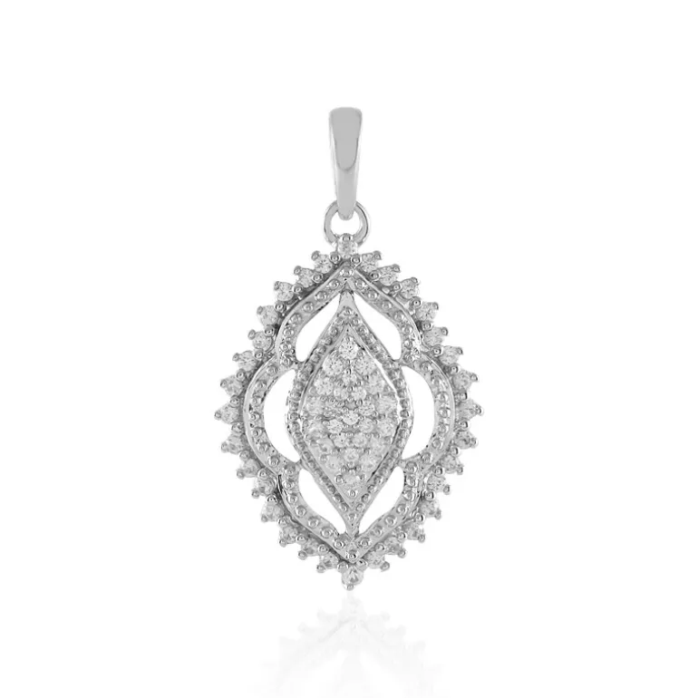 Entdecken Sie die schimmernde Eleganz dieses Anhängers aus 925er Sterlingsilber, der mit 57 kambodschanischen Zirkonen im Rundschliff von insgesamt 0,621 ct verziert ist. Mit einer Größe von 31 x 18 mm präsentiert sich dieses Schmuckstück in einem raffinierten Design, das das Licht wunderschön einfängt und reflektiert. Er ist ein vielseitiges Accessoire für Ihre Garderobe und eignet sich sowohl für Freizeitausflüge als auch für besondere Anlässe. Kombinieren Sie diesen Anhänger mit einer eleganten Kette für einen raffinierten Look, der jedes Ensemble aufwertet.