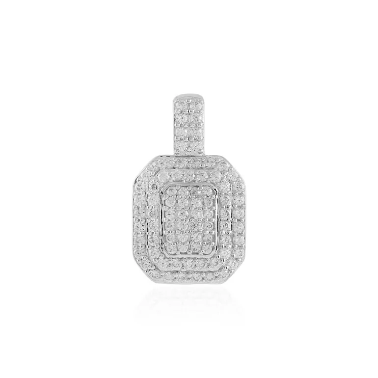 Entdecken Sie die Faszination dieses Anhängers aus Sterlingsilber, der mit 82 schimmernden Zirkonen aus Kambodscha von insgesamt 0,927 Karat besetzt ist. Die mit exquisiter Präzision gefertigten Edelsteine im Rundschliff sind in einem zeitgenössischen geometrischen Design angeordnet und verleihen einem klassischen Look eine moderne Note. Die Basis aus 925er Sterlingsilber mit einem Gewicht von ca. 2,04 Gramm bietet eine haltbare und glänzende Fassung für die Zirkone. Dieser Anhänger eignet sich sowohl für die Freizeit als auch für besondere Anlässe. Er passt sowohl zu einer schicken Bluse als auch zu einem eleganten Abendkleid und ist somit eine vielseitige Ergänzung für Ihre Schmucksammlung.
