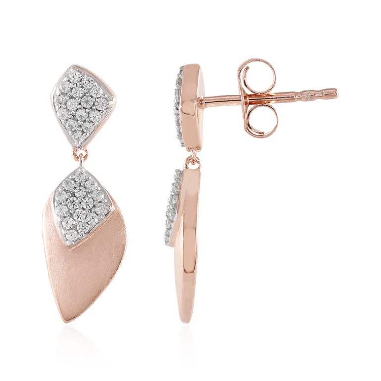Entdecken Sie die Faszination dieser schicken Ohrringe aus rosévergoldetem Sterlingsilber, die zur MONOSONO COLLECTION gehören. Jedes Stück ist sorgfältig mit 60 kambodschanischen Zirkonen von insgesamt 0,486 Karat besetzt, die bei jeder Drehung einen schillernden Glanz verbreiten. Die Ohrringe zeigen ein raffiniertes Design mit zwei geometrischen Formen, die durch den warmen Farbton des Roségoldes anmutig ergänzt werden. Mit einem Gewicht von ca. 3,19 Gramm strahlen die Ohrringe Eleganz aus und eignen sich sowohl für Tages- als auch für Abendgarderobe. Sie sind ein wahrer Inbegriff von Luxus und können sowohl zu einem eleganten Business-Outfit als auch zu einem romantischen Abend getragen werden, um ihm einen zarten Glanz zu verleihen.