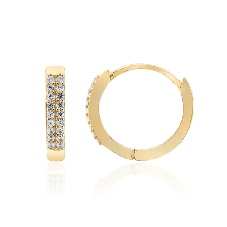 Diese schicken Ohrringe bestehen aus 36 tansanischen Zirkonen im Rundschliff (1 mm), gefasst in 925er Sterlingsilber mit luxuriöser Goldplattierung. Mit einem Gesamtkaratgewicht von 0,227 ct bieten sie ein subtiles Funkeln, das sich perfekt für die alltägliche Eleganz eignet oder die Abendgarderobe aufwertet. Mit einer Größe von 13 mm sind diese Ohrringe ein vielseitiges Accessoire für jeden Anlass, das sowohl zu legeren als auch zu formellen Outfits passt.