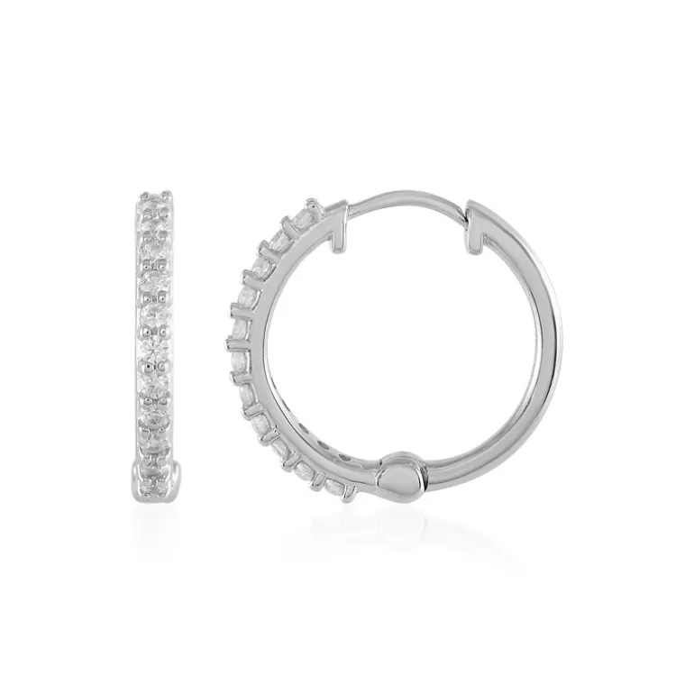 Entdecken Sie den Schimmer tansanischer Zirkone mit diesen raffinierten Creolen. Jeder Ohrring ist aus platiniertem 925er Sterlingsilber gefertigt und mit 11 Steinen im Rundschliff besetzt, die zusammen 0,453 Karat an Glanz bieten. Mit einem Durchmesser von 16 mm sind diese Ohrringe eine subtile und doch atemberaubende Ergänzung für jedes Ensemble, ideal für den Charme am Tag und die Eleganz am Abend. Der sichere Verschluss sorgt dafür, dass sie zu einem geschätzten Teil Ihrer Schmucksammlung werden.