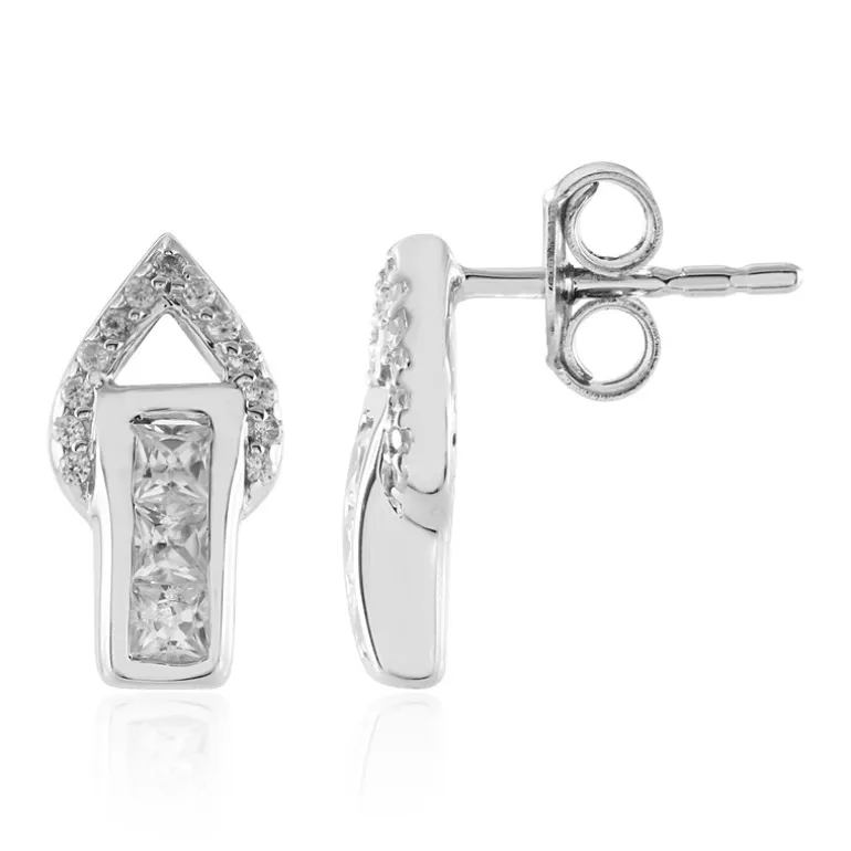 Diese Ohrringe aus Sterlingsilber sind ein Zeugnis von Anmut und Mode. Sie sind mit insgesamt 32 funkelnden Zirkonen aus Kambodscha mit einem Gesamtgewicht von 0,855 Karat besetzt. Die Edelsteine im Prinzess- und Rundschliff sind so gefasst, dass sie das Licht aus jedem Winkel einfangen und ein Spektrum schimmernder Farbtöne reflektieren. Das 925er Sterlingsilber bietet einen polierten, hochglänzenden Hintergrund, der jeden Look vervollständigt und diese Ohrringe zu einer idealen Wahl sowohl für legere Tageskleidung als auch für raffinierte Abend-Ensembles macht.