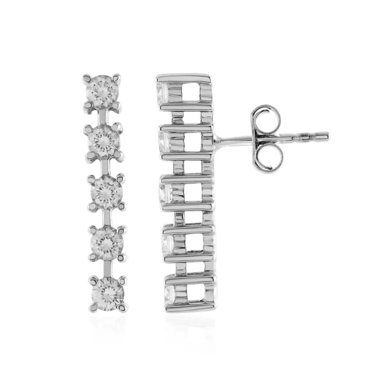 Wir präsentieren unsere eleganten und modernen Ohrringe, die mit glitzernden kambodschanischen Zirkonen von insgesamt 1,454 Karat besetzt sind. Gefertigt aus hochwertigem 925er Sterlingsilber und mit einer luxuriösen Platinbeschichtung versehen, wiegen diese Ohrringe etwa 2,64 Gramm. Die Zirkone im Rundschliff sind sorgfältig linear angeordnet und verleihen ihnen einen Hauch von raffinierter Eleganz. Diese Ohrringe eignen sich sowohl für legere als auch für formelle Anlässe. Sie ergänzen jedes Ensemble und werden mit Sicherheit ein fester Bestandteil Ihrer Schmucksammlung sein.