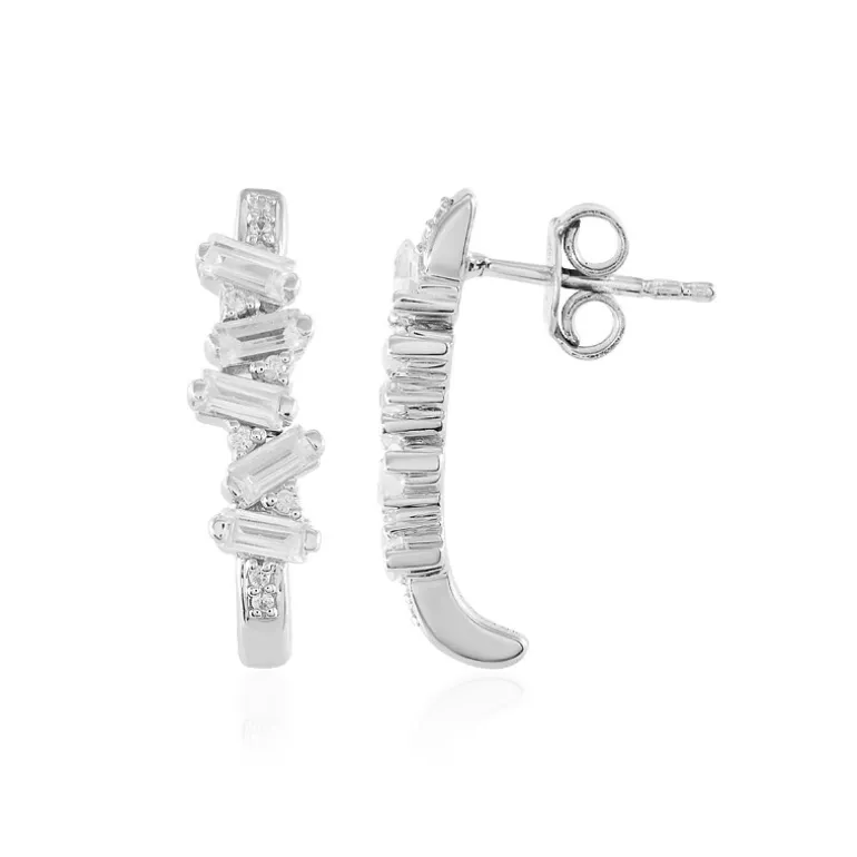 Wir präsentieren unsere bezaubernden Silberohrringe, die mit einer atemberaubenden Reihe kambodschanischer Zirkone von insgesamt 1,73 Karat verziert sind. Kunstvoll gefertigt mit Baguette-Stufenschliff und ergänzt durch zierliche Edelsteine im Rundschliff, strahlen diese Ohrringe Raffinesse aus. Die Fassung aus 925er Sterlingsilber sorgt für Glanz und Haltbarkeit, während das lineare Design jedem Ensemble einen modernen Touch verleiht. Perfekt, um Ihrer Bürokleidung einen Hauch von Glamour zu verleihen oder Ihre Abendgarderobe zu veredeln.