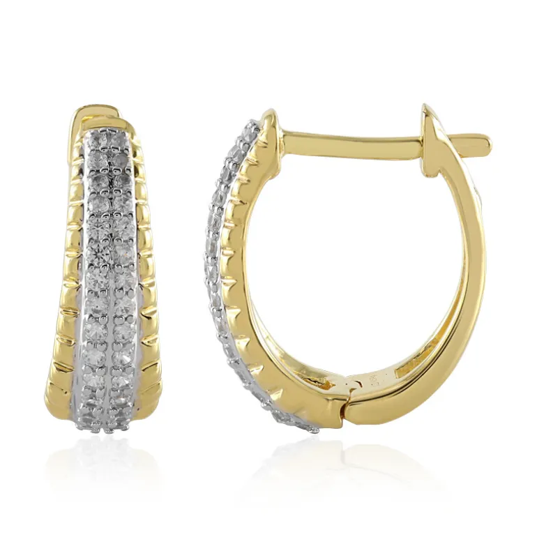 Entdecken Sie Eleganz mit diesen atemberaubenden Ohrringen aus vergoldetem Sterlingsilber, die mit 56 kambodschanischen Zirkonen von insgesamt 0,612 Karat besetzt sind. Die Steine im Rundschliff schimmern wunderschön und verleihen jedem Outfit einen Hauch von Raffinesse. Diese Ohrringe eignen sich ideal für formelle Anlässe oder zur Aufwertung des Alltags und werden zu einem geschätzten Bestandteil Ihrer Schmucksammlung.