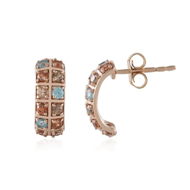 Entdecken Sie die Faszination dieser leuchtenden Ohrringe mit einer prächtigen Mischung aus orangefarbenen, Ratanakiri- und champagnerfarbenen Zirkonen aus Kambodscha. Sie sind in 925er Sterlingsilber gefasst und rosévergoldet und bieten einen atemberaubenden Glanz und Eleganz. Mit einem Gewicht von 1,59 g sind diese 14 mm großen Ohrringe ideal, um sowohl legere als auch formelle Outfits aufzuwerten. Tragen Sie sie zu jedem Anlass, um sich besonders und einzigartig zu fühlen.
