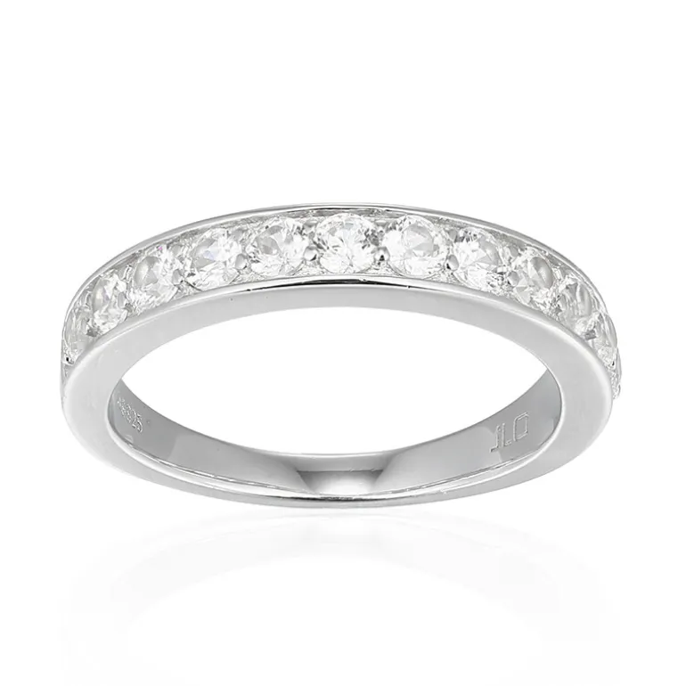 Entdecken Sie die ruhige Schönheit dieses Rings aus 925er Sterlingsilber, der mit einer Reihe leuchtender Zirkone im Rundschliff von insgesamt 0,91 Karat aus den reichen Landschaften Nigerias geschmückt ist. Diese fachmännisch facettierten Edelsteine fangen das Licht brillant ein und verleihen sowohl der Alltagskleidung als auch der besonderen Abendgarderobe ein subtiles Funkeln. Das schlanke Band aus hochwertigem Silber garantiert Langlebigkeit, ohne die Eleganz zu beeinträchtigen. Dieser Ring ist ideal, um jedem Look einen Hauch von Raffinesse zu verleihen. Er ist ein zeitloses Accessoire für jede Schmucksammlung.