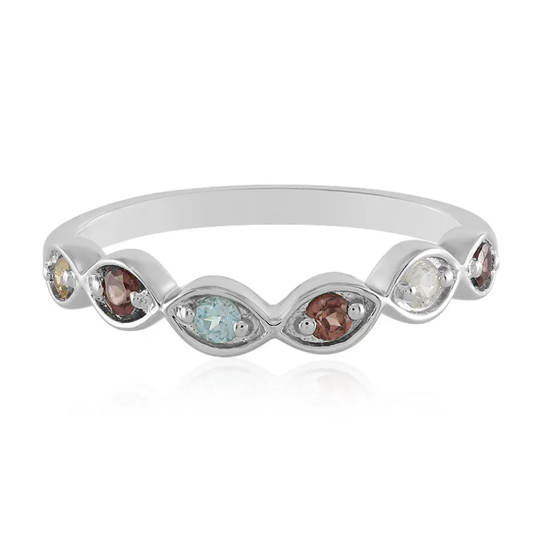 Entdecken Sie den schillernden Charme dieses platinierten Rings aus 925er Sterlingsilber, der mit einer bezaubernden Mischung aus Zirkonen aus Kambodscha und Tansania geschmückt ist. Mit einem Gesamtkaratgewicht von 0,578ct präsentiert dieser Ring ein Spektrum an Farben, darunter klare, gelbe, rosa, cognacfarbene und champagnerfarbene Töne, alle in einem anmutigen Rundschliff. Jeder der ca. 2,5 mm großen Edelsteine ist sorgfältig in einem eleganten Wellenmuster gefasst, das ihm ein modernes und doch zeitloses Aussehen verleiht. Dieser Ring eignet sich perfekt, um Ihrer Alltagskleidung einen Hauch von Raffinesse zu verleihen oder ein Abendensemble zu ergänzen. Er ist eine vielseitige Ergänzung für jede Schmucksammlung.