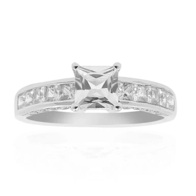 Wir präsentieren unseren atemberaubenden Ring aus Sterlingsilber, gekrönt mit einem schillernden 0,729 Karat großen kambodschanischen Zirkon im Princess-Schliff und ergänzt durch eine Reihe funkelnder Nebensteine von insgesamt 1,643 Karat. Die sorgfältigen Princess-Schliffe der Haupt- und Akzentzirkone verstärken den lichtdurchfluteten Glanz dieses Schmuckstücks, das sich sowohl für die tägliche Eleganz als auch für den glamourösen Abend eignet. Das aus hochwertigem 925er Sterling Silber gefertigte Band verleiht dem Design einen zeitlosen Glanz. Dieser raffinierte Ring ist ein ideales Geschenk für einen besonderen Moment oder einfach zur Aufwertung Ihrer Schmucksammlung.