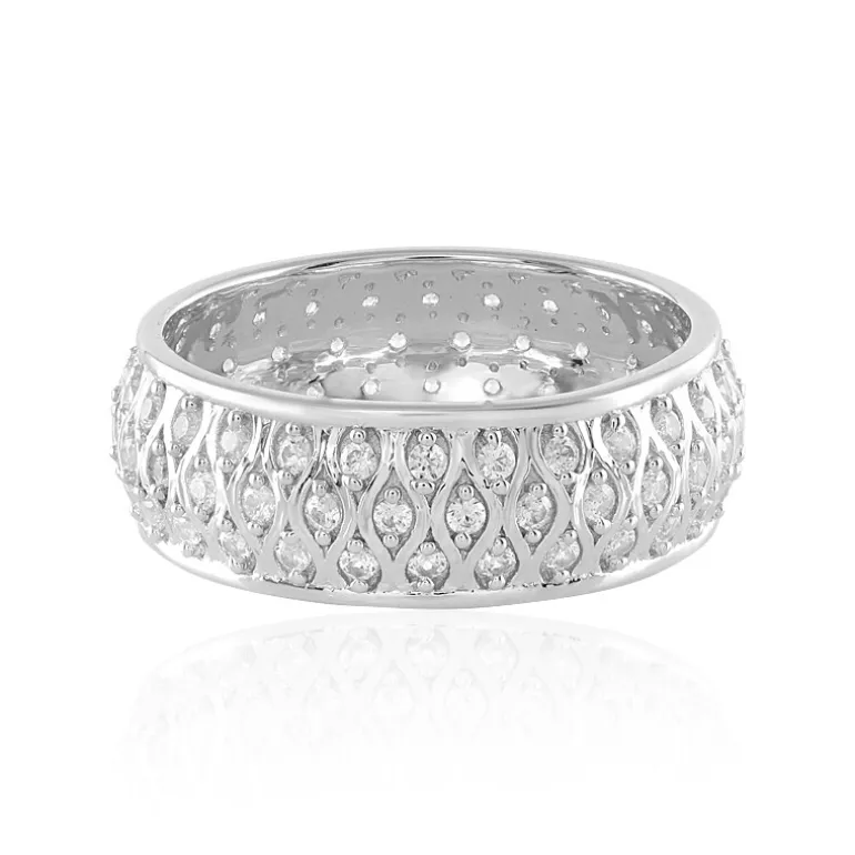 Entdecken Sie die Anziehungskraft dieses schicken Zirkonrings aus rhodiniertem Silber, der Raffinesse und Eleganz ausstrahlt. Sein filigranes Gitterdesign, das mit mehreren schimmernden Zirkonsteinen besetzt ist, sorgt für ein schillerndes Lichtspiel. Die präzise gefertigte Rhodinierung verstärkt den Glanz und die Haltbarkeit des Silbers und sorgt für dauerhafte Schönheit. Dieser Ring eignet sich perfekt für besondere Anlässe oder für einen Hauch von Glamour im Alltag und ist eine vielseitige Ergänzung für jede Schmucksammlung. Kombinieren Sie ihn mit Ihrem Lieblingsabendkleid oder einem eleganten Freizeitoutfit und werten Sie Ihr Ensemble sofort auf.