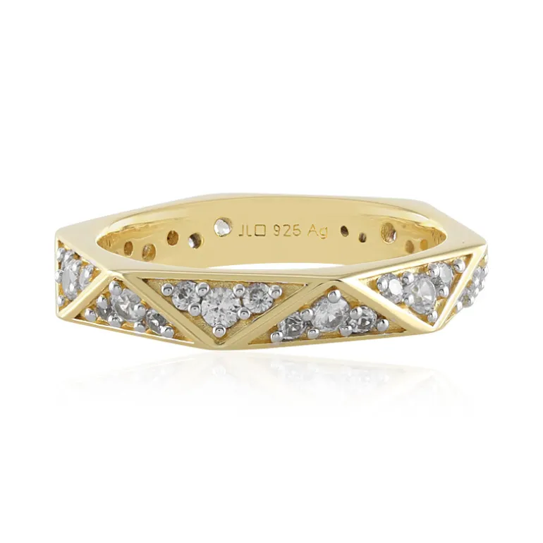 Dieser Ring aus vergoldetem Silber besticht durch sein Mosaik aus Zirkonen, das bei jeder Drehung der Hand schimmert. Das geometrische Design verleiht ihm ein zeitgenössisches Flair, ideal für alle, die moderne Eleganz zu schätzen wissen. Er eignet sich perfekt für den Übergang vom Tag zum Abend und passt sowohl zu legeren Ensembles als auch zu Abendgarderobe. Peppen Sie Ihr Accessoire mit diesem auffälligen Stück auf, das Stil und Raffinesse miteinander verbindet.