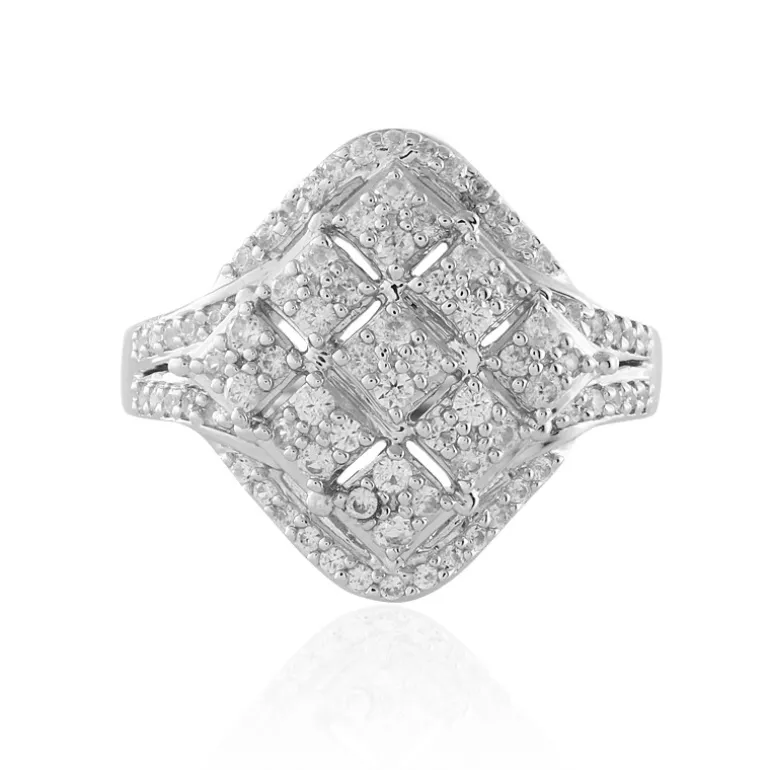 Entdecken Sie die Anziehungskraft dieses atemberaubenden Rings aus Sterlingsilber, der mit einem Gesamtkaratgewicht von 0,927 ct in strahlenden kambodschanischen Zirkonen geschmückt ist. Jeder schimmernde Stein wurde sorgfältig rund geschliffen, um seine Brillanz zu verstärken und Ihrem Outfit einen Hauch von Eleganz zu verleihen. Er eignet sich sowohl für den lässigen Schick als auch für den glamourösen Abend und ist eine exquisite Wahl für jede Kollektion. Mit seiner großen Präsenz und seiner feinen Verarbeitung wird dieser Ring Sie mit Sicherheit in seinen Bann ziehen.