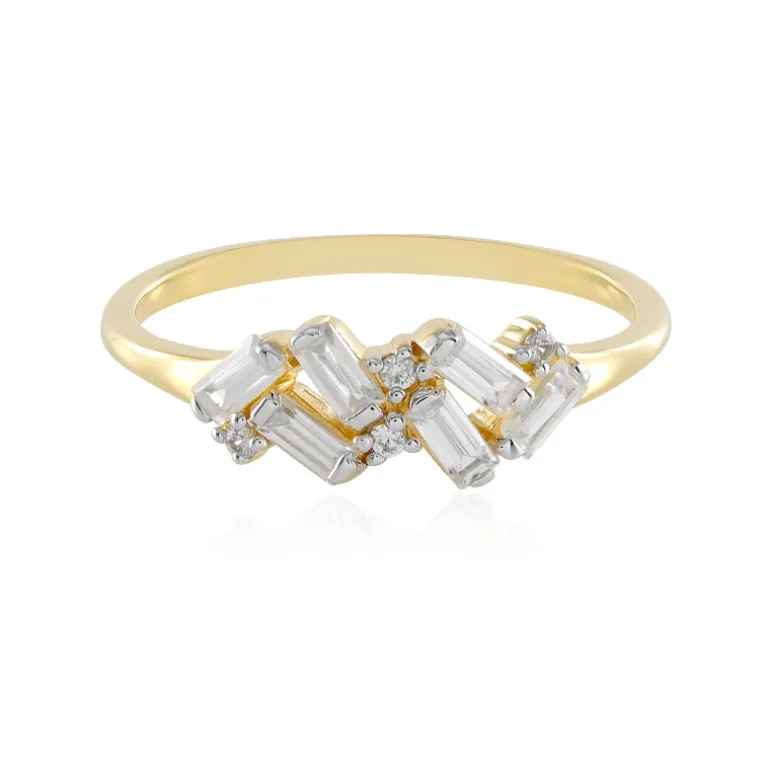 Entdecken Sie das Strahlen des kambodschanischen Zirkons mit diesem aufwändig gestalteten Ring aus vergoldetem 925er Sterlingsilber. Mit einer auffälligen Kombination aus Zirkonen im Baguetteschliff in einem Stufenmuster, akzentuiert mit kleineren Edelsteinen im Rundschliff, bietet er ein Gesamtkaratgewicht von 1,098ct, das Ihre Hand bei jeder Bewegung zum Leuchten bringt. Mit seinem schlanken Profil und seiner modernen Eleganz geht dieser Ring nahtlos vom Büroschick zum Abendglamour über und ist damit eine vielseitige Ergänzung für jede Schmucksammlung.