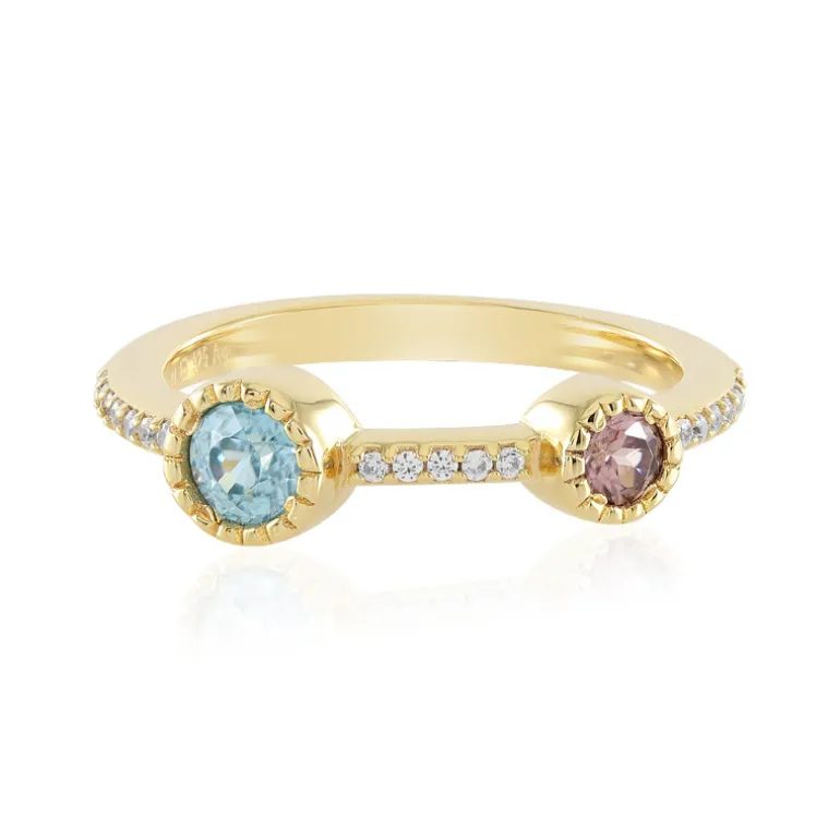 Dreifarbiger Zirkon Goldplattierter Silberring, 0,644ct