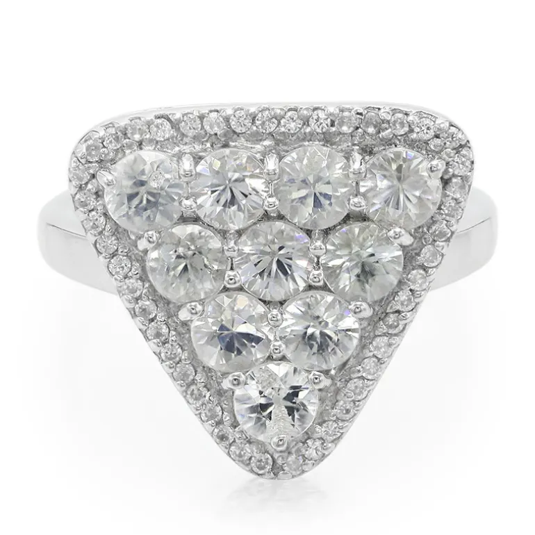 Entdecken Sie den Glanz kambodschanischer Zirkone mit diesem atemberaubenden Ring aus Sterlingsilber. Mit einem Gesamtgewicht von 2,828 Karat schimmern diese Edelsteine vor Brillanz. Die Hauptsteine mit rundem Brillantschliff werden durch zahlreiche kleinere Zirkone perfekt ergänzt und bilden eine exquisite Pavé-Fassung, die das Licht spektakulär reflektiert. Dieses wunderschön gearbeitete Schmuckstück mit einem Gewicht von 4,52 g ist vielseitig genug, um den Alltag zu verschönern oder bei besonderen Anlässen zu glänzen.