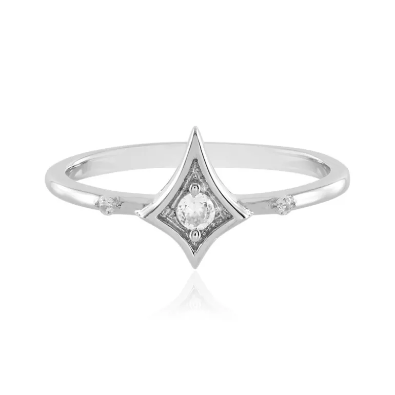 Dieser geometrisch inspirierte Ring präsentiert einen schimmernden Zirkon von 0,139 Karat aus Kambodscha, gefasst in hochwertigem platiniertem 925er Sterling Silber für dauerhafte Schönheit. Der zentrale Edelstein wird von zwei zierlichen Zirkonen von insgesamt 0,04 Karat akzentuiert, die sein Funkeln noch verstärken. Mit einem Gesamtgewicht von 0,179 ct passt dieses Schmuckstück sowohl zur Freizeit- als auch zur Abendgarderobe und ist somit für jede Gelegenheit geeignet. Ein raffiniertes Geschenk für eine besondere Person oder eine zeitlose Ergänzung für Ihre eigene Sammlung.
