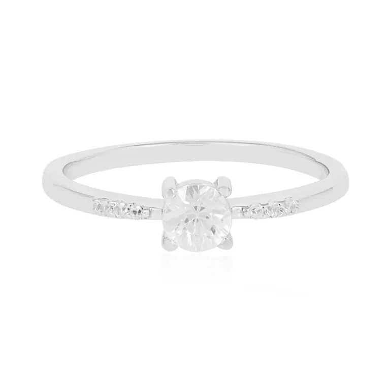 Erleben Sie die Anziehungskraft dieses fein gearbeiteten Rings mit einem kambodschanischen Zirkon im Brillantschliff in der Mitte, ergänzt durch sechs weitere Zirkone, die entlang des Bandes funkeln. Das hochwertige 925er Sterlingsilber ist mit einer Platinveredelung für dauerhaften Glanz versehen. Mit einem Gesamtgewicht von 0,582 ct bietet dieser Ring einen modernen Twist zu einem klassischen Design, das sowohl zu legeren als auch zu formellen Anlässen passt. Er ist ein subtiles Statement, das für Raffinesse steht.