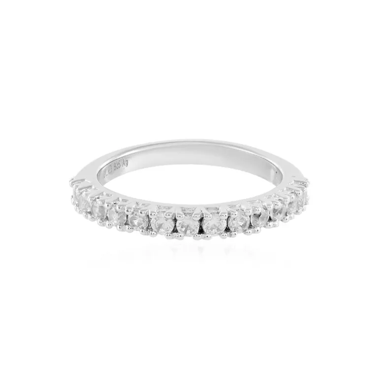Entdecken Sie die Faszination der funkelnden Zirkone aus Kambodscha mit diesem charmanten Ring. Der Ring ist aus hochwertigem 925er Sterlingsilber gefertigt und für zusätzlichen Glanz mit einer luxuriösen Platinbeschichtung versehen. Das Schmuckstück verfügt über 13 Zirkone im Rundschliff mit insgesamt 0,655 Karat. Das makellos polierte Silber unterstreicht die makellose Klarheit der Zirkone und macht diesen Ring perfekt für den eleganten Alltag oder besondere Anlässe. Kombinieren Sie ihn mit einem klassischen kleinen schwarzen Kleid oder einem professionellen Ensemble für einen Hauch von Raffinesse.