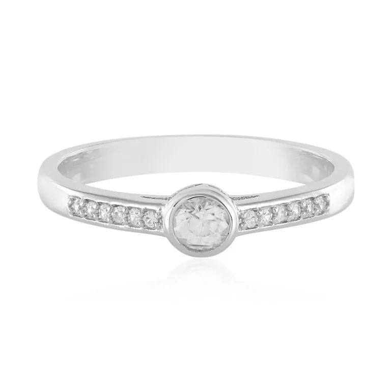 Entdecken Sie die Anziehungskraft dieses platinierten Rings aus 925er Sterlingsilber mit einem bezaubernden kambodschanischen Zirkon von 0,363 ct im klassischen Rundschliff, der von 12 zierlichen Zirkonen von insgesamt 0,143 ct umgeben ist. Mit einem Gesamtgewicht von 0,506 ct bietet dieser Ring schlichte Eleganz für jede Gelegenheit. Er eignet sich sowohl für den Alltag als auch für besondere Anlässe. Mit seinem zeitlosen Charme ergänzt er ein professionelles Ensemble oder wertet ein Cocktailkleid auf.