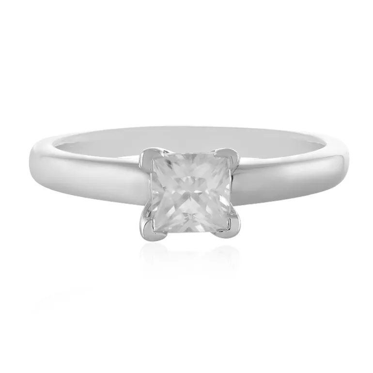 Dieser Ring aus platiniertem 925er Sterlingsilber präsentiert einen bezaubernden kambodschanischen Zirkon von 0,94 Karat im klassischen Prinzess-Schliff. Die Brillanz des quadratischen Edelsteins wird durch das schlichte, moderne Band hervorgehoben und macht ihn zu einer idealen Wahl sowohl für die Eleganz am Tag als auch für die Raffinesse am Abend. Perfekt zum Verschenken oder um Ihrer Sammlung einen Hauch von Glanz zu verleihen.