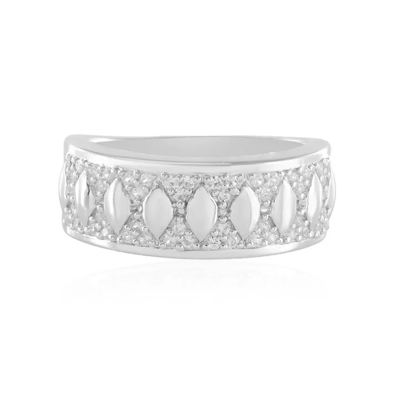 Dieser Ring aus Sterlingsilber strahlt mit seinen 48 sorgfältig geschliffenen kambodschanischen Zirkonen von insgesamt 0,306 Karat zeitlose Eleganz aus. Gefertigt aus hochwertigem 925er Sterlingsilber mit einem Gewicht von 3,6 Gramm, zeigt er einen wunderschönen, funkelnden Effekt, der das Licht aus jedem Winkel einfängt. Das Design ist klassisch und vielseitig und eignet sich sowohl für den Alltag als auch für besondere Anlässe. Mit seinem strahlend weißen Farbton ist er eine ausgezeichnete Wahl für ein schickes Business-Outfit oder einen Hauch von Glanz für ein Abendensemble.