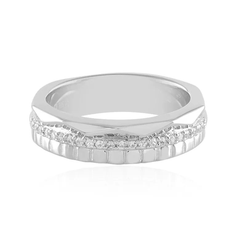 Entdecken Sie die Anziehungskraft von Schlichtheit und Funkeln in diesem schicken Ring aus 925er Sterlingsilber, der für dauerhaften Glanz platiniert ist. Er verfügt über 22 kambodschanische Zirkone im Rundschliff mit insgesamt 0,146 Karat, die elegant gefasst sind und bei jeder Bewegung das Licht einfangen. Das moderne Design dieses 20×20 mm großen Rings schmückt Ihren Finger und eignet sich perfekt für das tägliche Tragen oder als raffinierte Ergänzung zu Ihrer Abendgarderobe. Dieser Ring ist ein unverzichtbarer Bestandteil jeder Kollektion und verspricht einen Hauch von Eleganz für jede Gelegenheit.