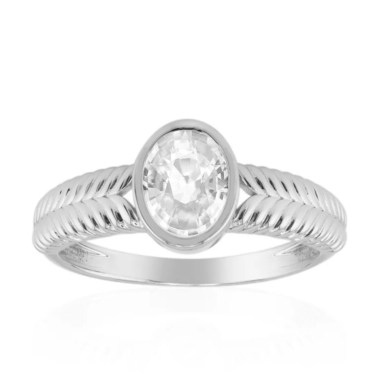 Entdecken Sie die Faszination dieses Rings aus platiniertem 925er Sterlingsilber, der einen 1,88-karätigen kambodschanischen Zirkon mit ovalem Schliff präsentiert, der aus jedem Blickwinkel fasziniert. Das Design zeichnet sich durch ein einzigartiges gedrehtes Band aus, das Ihrem Ensemble einen Hauch von Raffinesse verleiht. Es ist ein zeitloser Schatz für jeden Schmuckliebhaber und eignet sich perfekt, um die Tages- und Abendgarderobe aufzuwerten.