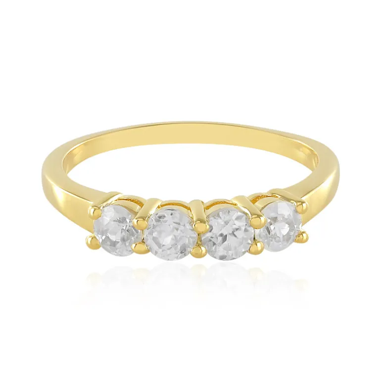 Verleihen Sie Ihrem Stil einen Hauch von Glamour mit diesem atemberaubenden Ring aus vergoldetem 925er Sterlingsilber, der vier strahlende kambodschanische Zirkone von insgesamt 1,51 Karat präsentiert. Jeder Edelstein ist meisterhaft in runder Brillantform geschliffen und misst etwa 4 mm, um das Licht in jedem Winkel einzufangen. Mit einem Gewicht von etwa 2,32 Gramm ist dieser Ring sowohl luxuriös als auch angenehm zu tragen. Er eignet sich sowohl für den eleganten Alltag als auch für besondere Anlässe. Er ergänzt ein schickes Tagesoutfit oder verleiht der Abendgarderobe ein funkelndes Finish.