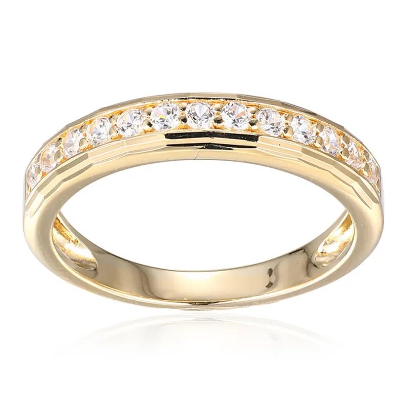 Entdecken Sie die Faszination des kambodschanischen Zirkons mit diesem Ring aus vergoldetem 925er Sterlingsilber. Mit 13 Zirkonen im Rundschliff von insgesamt 0,329 Karat, die bei jeder Bewegung funkeln, ist dieses Stück ein Zeugnis von Eleganz und Raffinesse. Mit einem Gewicht von ca. 1,92 Gramm ist das zeitlose Design des Rings sowohl für legere als auch für formellere Anlässe perfekt geeignet.