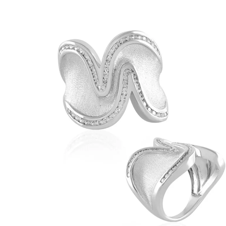 Entdecken Sie die Eleganz dieses atemberaubenden Rings im Wellendesign, der aus 925er Sterlingsilber gefertigt ist. Verziert mit 54 Zirkonen im Rundschliff aus Kambodscha mit einem Gesamtgewicht von 0,875 Karat, glänzt dieser Ring mit Raffinesse. Er eignet sich sowohl für legere als auch für formelle Anlässe und lässt sich wunderbar mit schicker Abendgarderobe oder gehobener Alltagskleidung kombinieren. Setzen Sie ein Stil-Statement mit einem Hauch von modernem Flair.