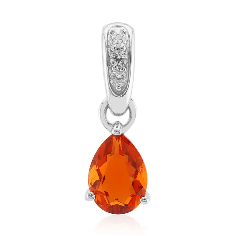 Mit diesem atemberaubenden Anhänger aus 925er Sterlingsilber mit mexikanischem Feueropal unterstreichen Sie Ihren Stil. Der leuchtende, birnenförmige Opal, der von drei funkelnden Zirkonsteinen aus Tansania akzentuiert wird, verkörpert die Essenz von Eleganz und Raffinesse. Er eignet sich sowohl für den Tag als auch für den Abend und passt wunderbar zu einem eleganten Kleid oder zu Freizeitkleidung, die jedem Outfit einen feurigen Touch verleiht.