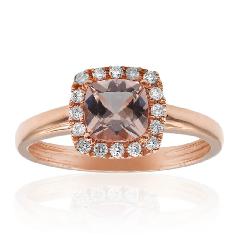 Strahlen Sie zeitlose Eleganz aus mit diesem fein gearbeiteten Ring mit einem glänzenden Morganit im Kissenschliff von 0,81 Karat aus Mosambik, gefasst in luxuriösem 585er Roségold. Umgeben von einem Halo aus 16 Diamanten der Reinheit SI1 von insgesamt 0,16 Karat, verbindet dieses Schmuckstück Vintage-Charme mit moderner Raffinesse. Mit einem Gewicht von ca. 2,56 Gramm ist dieser Ring perfekt für besondere Anlässe oder als auffällige Ergänzung zu Ihrem täglichen Ensemble.