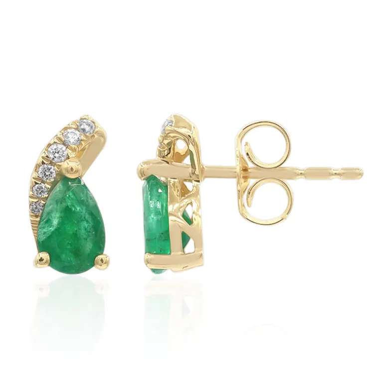 Entdecken Sie die Faszination dieser anmutigen Smaragd-Ohrringe mit Edelsteinen aus Sambia in AAA-Qualität mit üppigen 0,734 Karat. Die Smaragde im Tropfenschliff werden von einem funkelnden Halo aus 12 runden Diamanten im Brillantschliff mit insgesamt 0,06 Karat ergänzt. Diese 9 mm großen Ohrringe aus 10-karätigem Gelbgold mit einem minimalistischen Gewicht von ca. 0,59 Gramm strahlen Raffinesse aus. Sie eignen sich sowohl für lässige Brunchs als auch für elegante Abende und verleihen jedem Outfit einen raffinierten Hauch von Farbe.