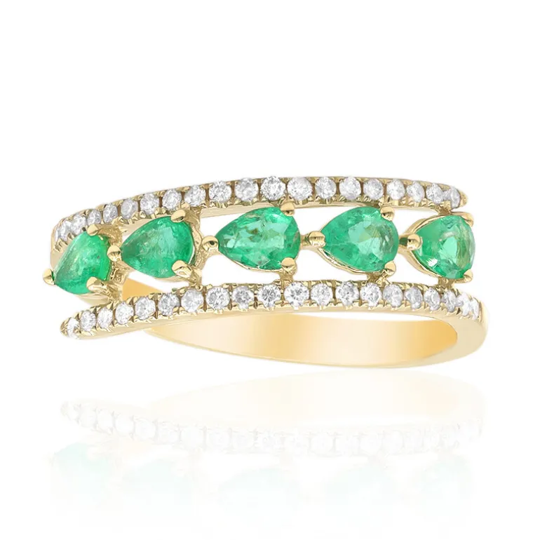Entdecken Sie die lebendige Anziehungskraft unseres anmutigen Goldrings mit sambischem Smaragd und Diamanten. Fünf sambische AAA-Smaragde mit einem Gesamtgewicht von 0,668 ct im Tropfenschliff, luxuriös umrahmt von 40 Diamanten SI2-H mit einem Gesamtgewicht von 0,201 ct. Dieses exquisite Stück, gefasst in 10 Karat Gold, wiegt etwa 1,93 g und ist ein wahrer Schatz. Er eignet sich perfekt für Abendveranstaltungen oder als raffiniertes Accessoire zu Ihrer Geschäftskleidung und versprüht Luxus und Charme.