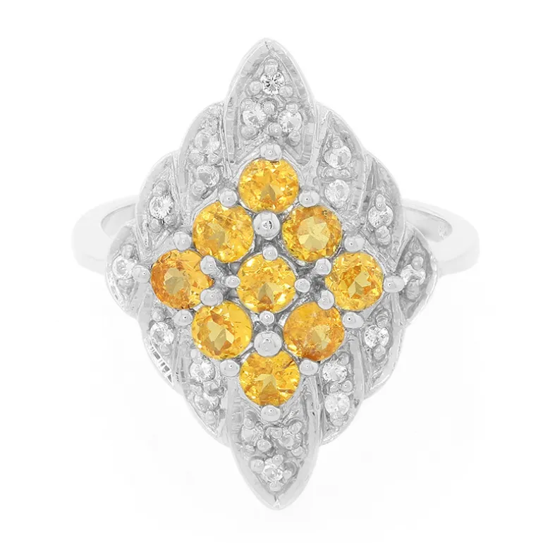 Dieser atemberaubende Ring aus Sterlingsilber präsentiert 9 leuchtende AAA-Spessartine aus Nigeria, die durch 20 weiße Topase aus Brasilien perfekt ergänzt werden. Mit einem Gesamtgewicht von 1,541 Karat bilden die Steine im Rundschliff ein schillerndes Schauspiel. Dieses Schmuckstück ist ideal für elegante Abende oder als raffiniertes Accessoire zu Freizeitkleidung. Es ist ein Beweis für sorgfältige Handwerkskunst und zeitlosen Stil.