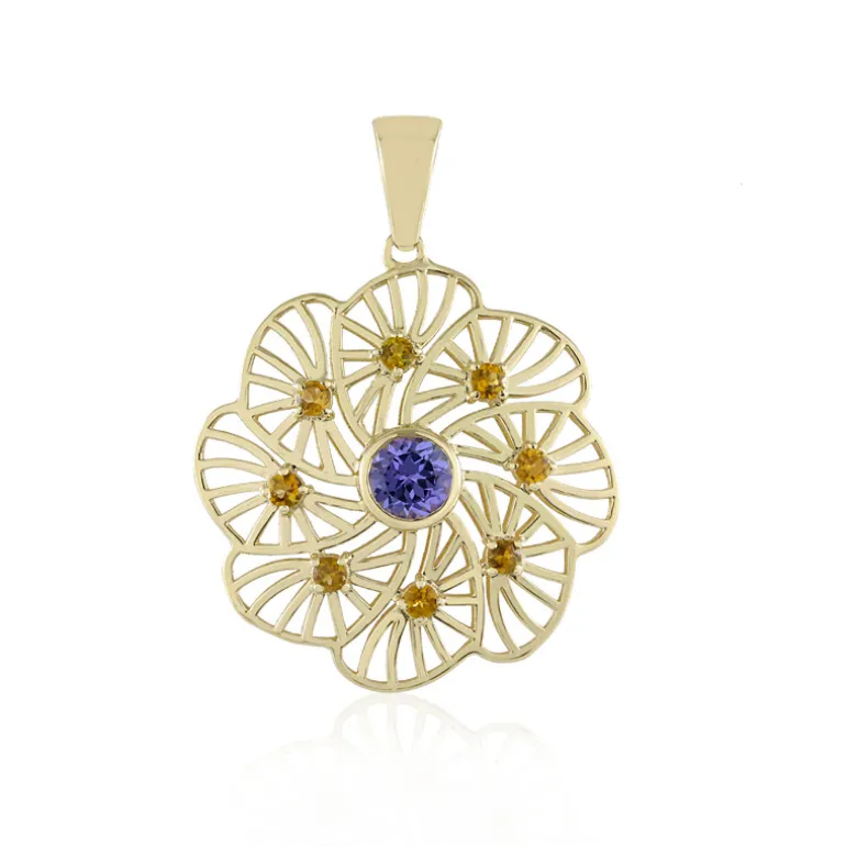 Entdecken Sie die Eleganz dieses exquisiten Tansanit-Anhängers aus 9 Karat Gelbgold. Mit einem atemberaubenden 0,27ct Tansanit aus Tansania und acht zarten gelben Turmalinen fängt er das Licht wunderschön ein. Dieser Anhänger ist ideal, um jedem Outfit einen Hauch von Raffinesse zu verleihen, und eignet sich sowohl für das tägliche Tragen als auch für besondere Anlässe. Kombinieren Sie ihn mit einer einfachen Goldkette für einen kompletten Look.
